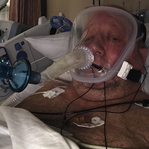 His symptoms soon became much more severe, and he rushed to the hospital. At the ER things moved quickly; his oxygen levels dropped rapidly, which meant he had to be hooked up to a CPAP machine. Unfortunately, soon after that, he blacked out and was transferred to a ventilator. He would remain on the ventilator for 38 days, during which time he also required intubation and feeding tubes. Those days were full of constant challenges for his medical team as he went into cardiac arrest three times requiring them to install a temporary pacemaker while he was unconscious and was resuscitated by the clinical team multiple times. His family was told to prepare themselves for the worst. Then, miraculously, he woke up.