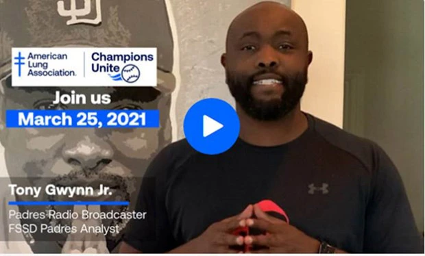 Support Our Mission Through Champions Unite: We're teaming up with Southern California big league baseball teams to host a first-of-its-kind benefit, Champions Unite, that will delight fans everywhere. Players from the San Diego Padres, Los Angeles Dodgers and Los Angeles Angels will compete in a fun, off-field talent showdown. Reserve your spot at baseball's virtual talent show. If you are in CA or NV, pick up a Champion Box, the perfect gift for you or that special someone who wants the "Take Me Out to the Ball Game" experience. Although the event is based in southern California, anyone across the country who loves baseball, or loves healthy lungs can join in the fun.